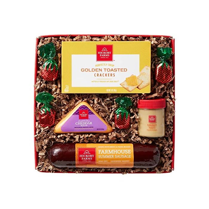 Amazon Com Hickory Farms Gift Basket Assortment With Hardwood Smoked Summer Sausage Mustard Cheese And Crackers Everything Else
